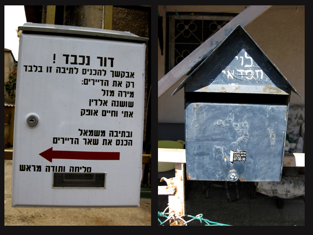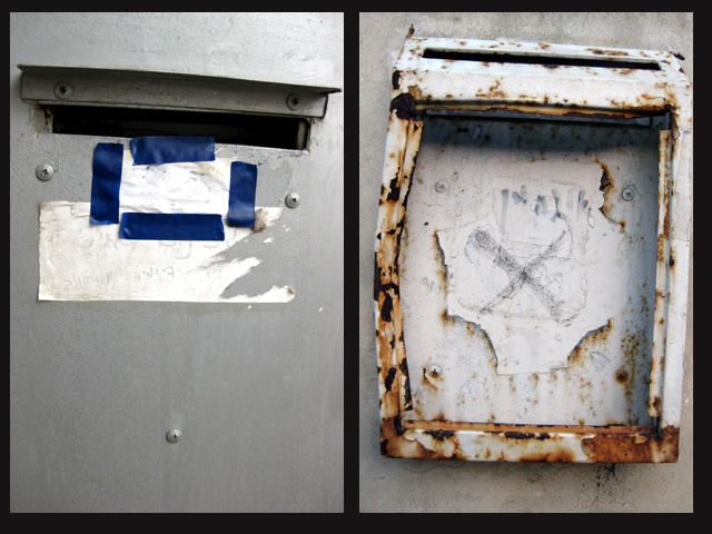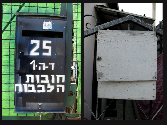 The letterboxes of Shapira neighborhood in Tel Aviv are masterpiece of improvisation in everyday life. We always liked them. Their aesthetics contradict the process of gentrification around us.